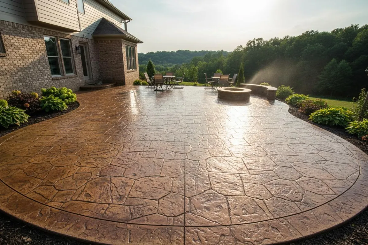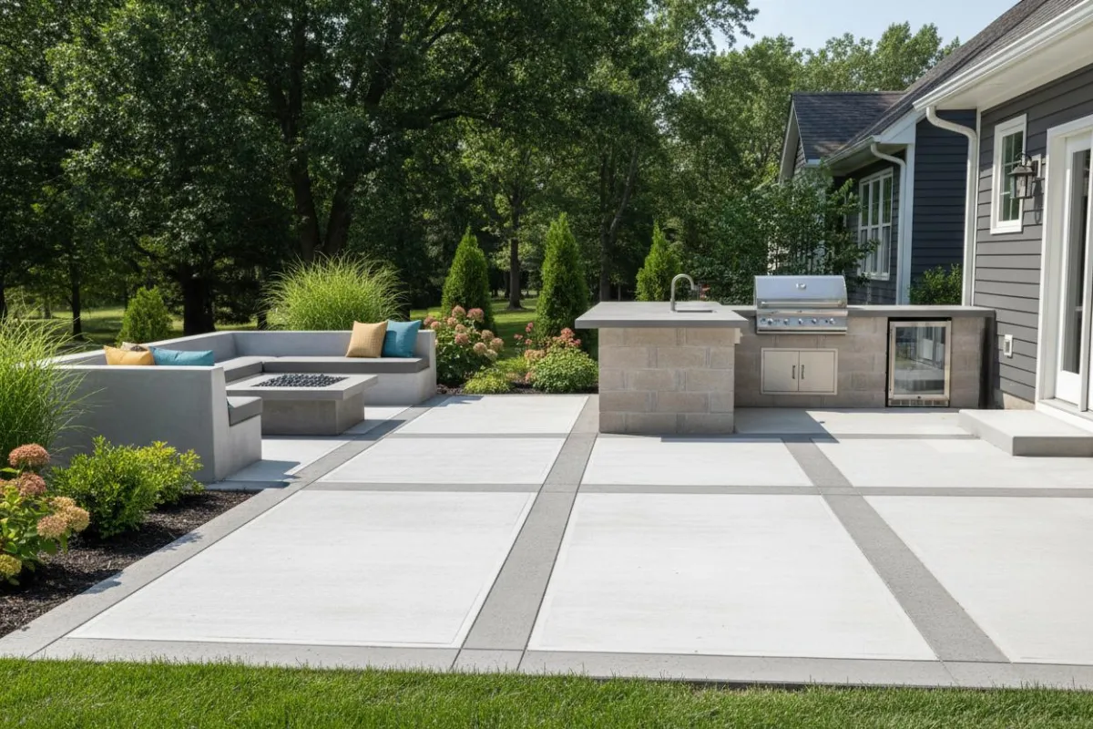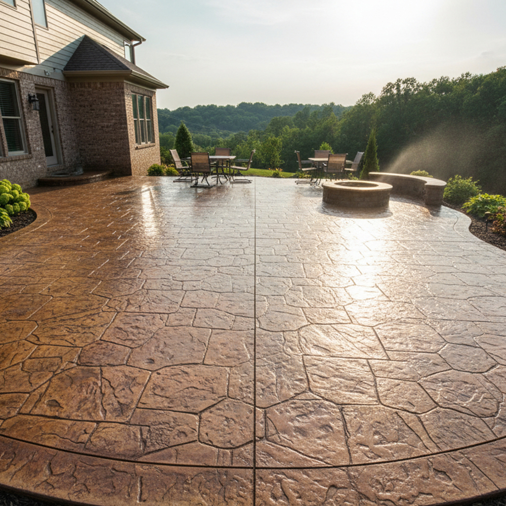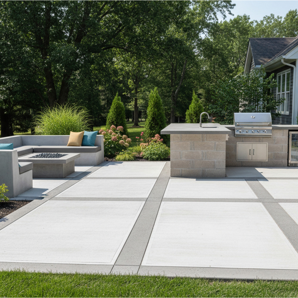 Simple slabs to stamped concrete patios with integrated drainage. Outdoor space that actually holds up through freeze-thaw cycles.